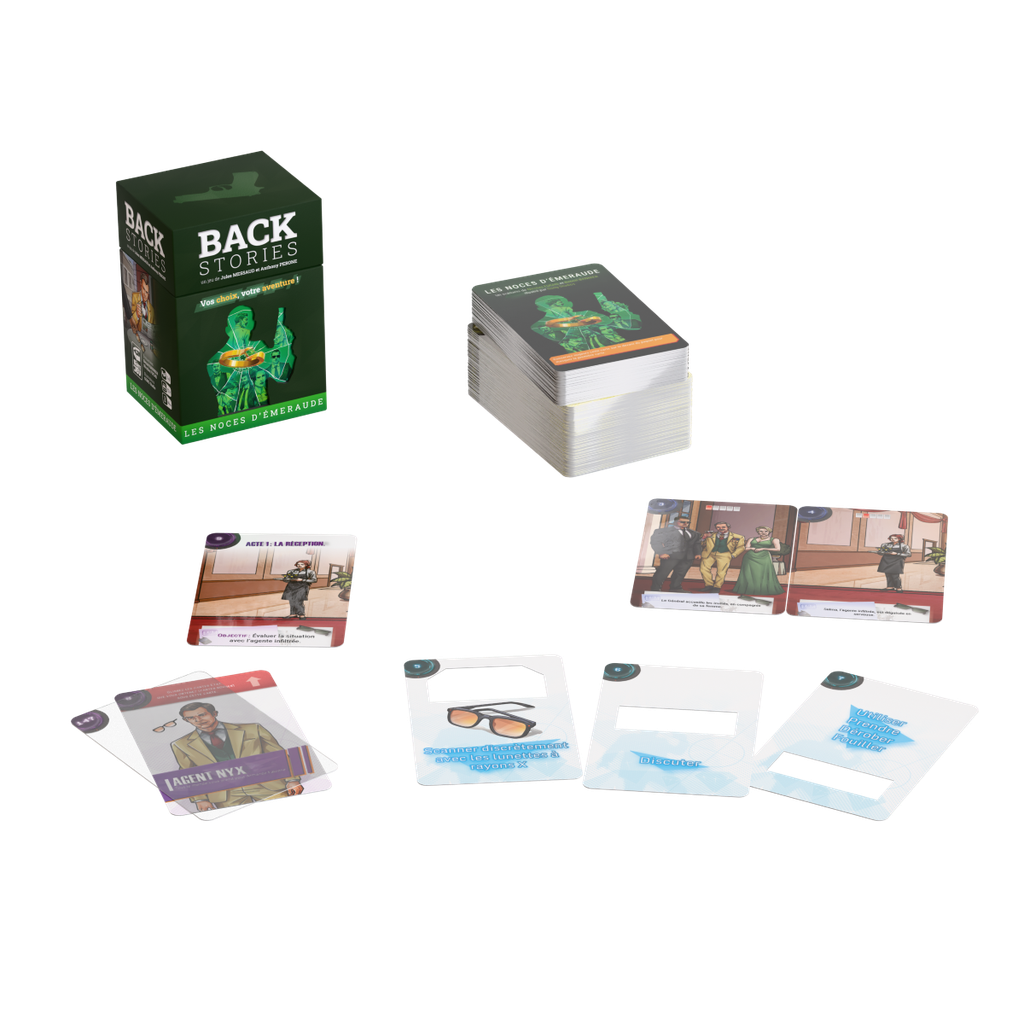 Backstories est un jeu à la mécanique aussi simple que révolutionnaire : un peu à la manière des jeux vidéo Point and Clic, interagissez avec votre environnement pour avancer dans votre palpitante aventure. Certaines cartes (Panorama) représentent l'environnement dans lequel vous évoluez. D'autres cartes (Actions) sont perforées, et représentent les actions que vous pouvez accomplir (Discuter, Fouiller, Objets en votre possession, etc.). Pour interagir, il vous suffit de disposer une carte perforée au dos de la carte Panorama qui vous intéresse, retournez alors la carte, et il vous suffit de lire le résultat de votre choix.