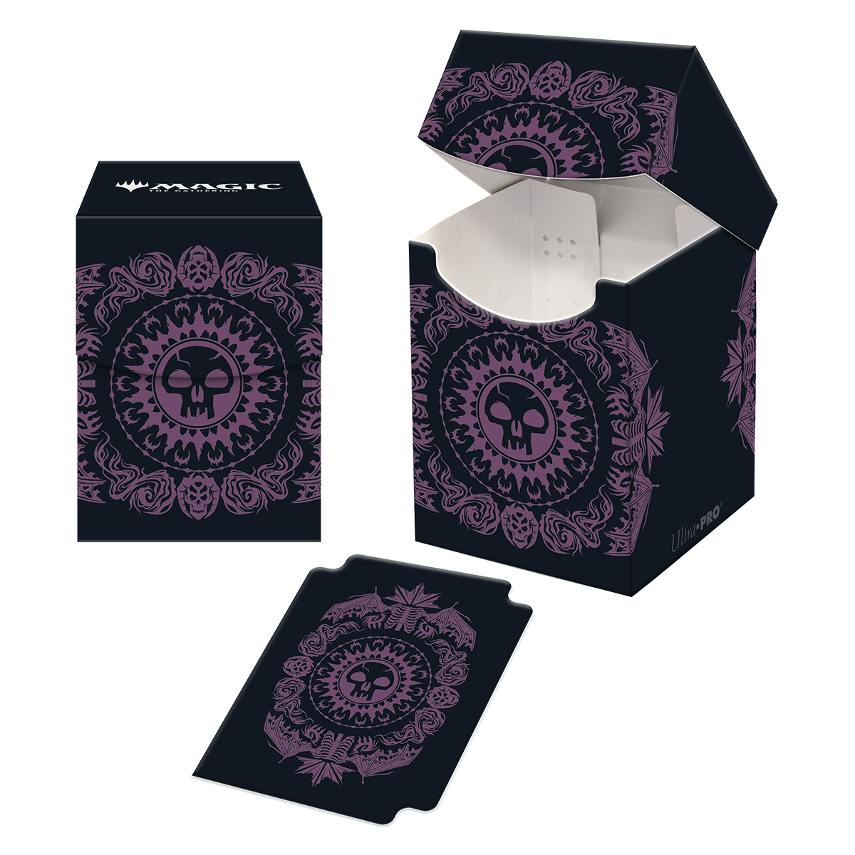 The Mana 7 Swamp 100+ Deck Box® features vibrant, full-color artwork from Magic: The Gathering and includes a matching deck divider. Made with archival-safe, non-PVC, rigid polypropylene materials, you can store up to 100 double-sleeved cards with confidence. The self-locking lid keeps your cards securely stored when not in use, while also offering easy access. Fits standard size trading cards.