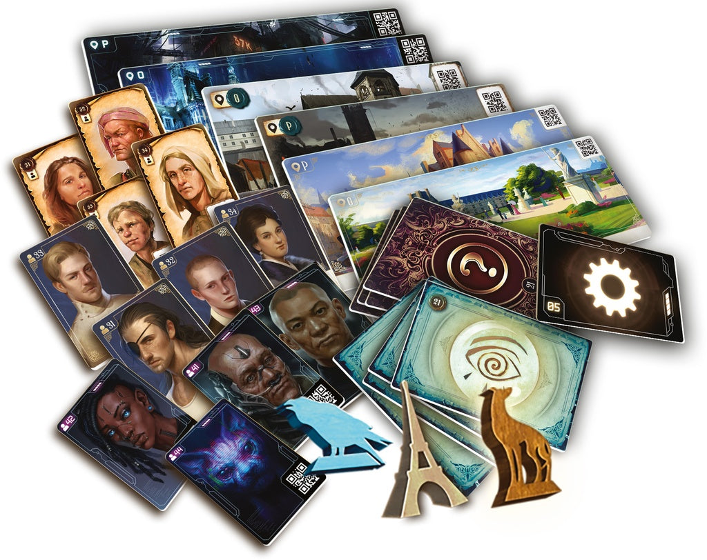 Inclus également 3 meeples en bois : Perceval le lévrier, la Tour Eiffel et votre compagnon cyber-corbeau.