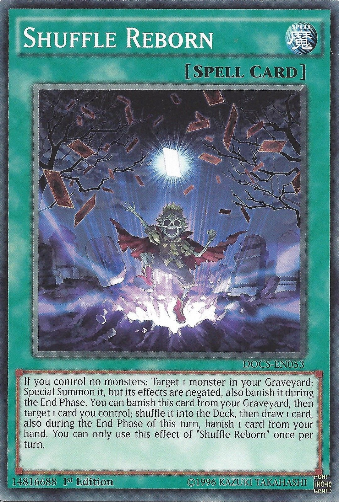 If you control no monsters: Target 1 monster in your Graveyard; Special Summon it, but its effects are negated, also banish it during the End Phase. You can banish this card from your Graveyard, then target 1 card you control; shuffle it into the Deck, then draw 1 card, also during the End Phase of this turn, banish 1 card from your hand. You can only use this effect of "Shuffle Reborn" once per turn.